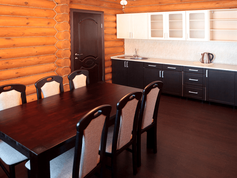 Уютный однокомнатный номер с кухней и отдельным санузлом. Номер находится в одноэтажном срубовом доме.